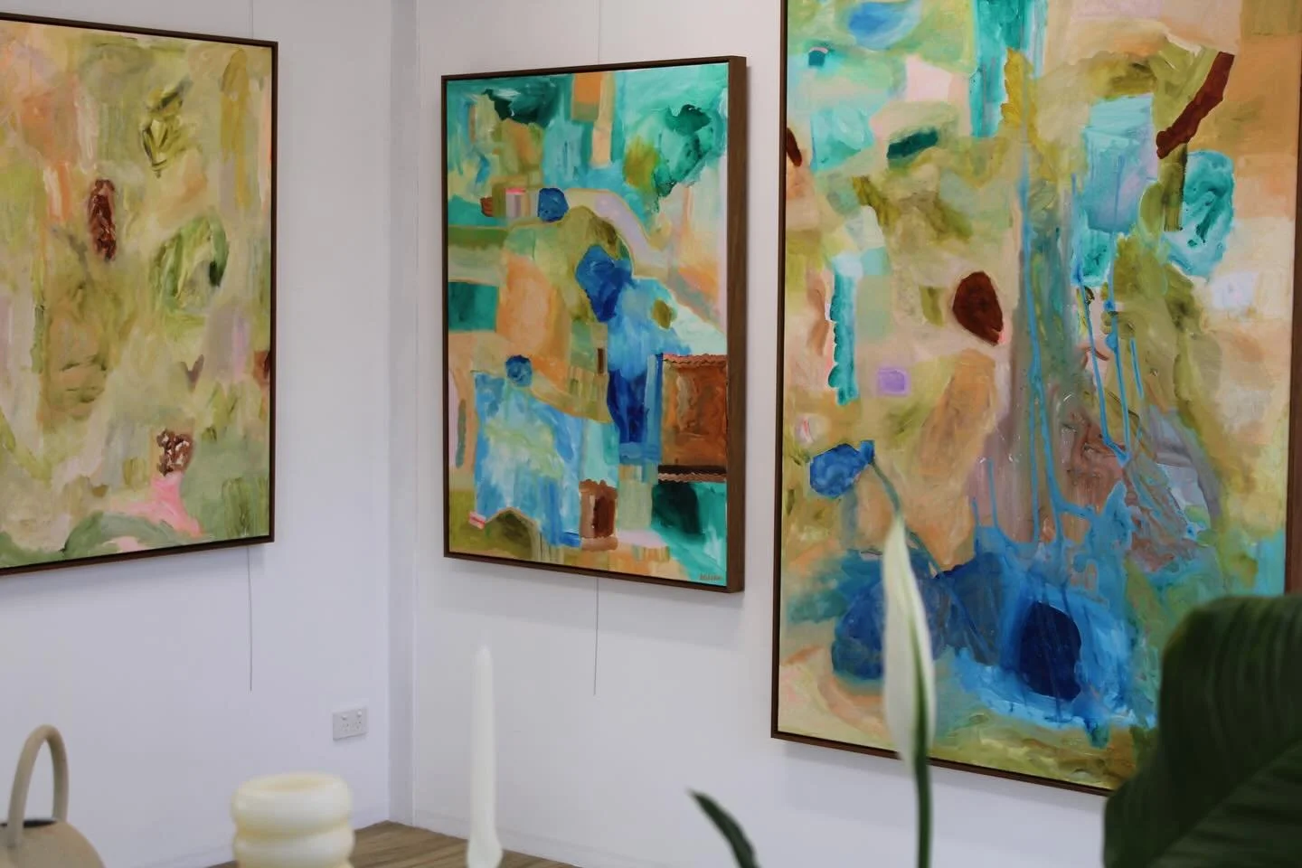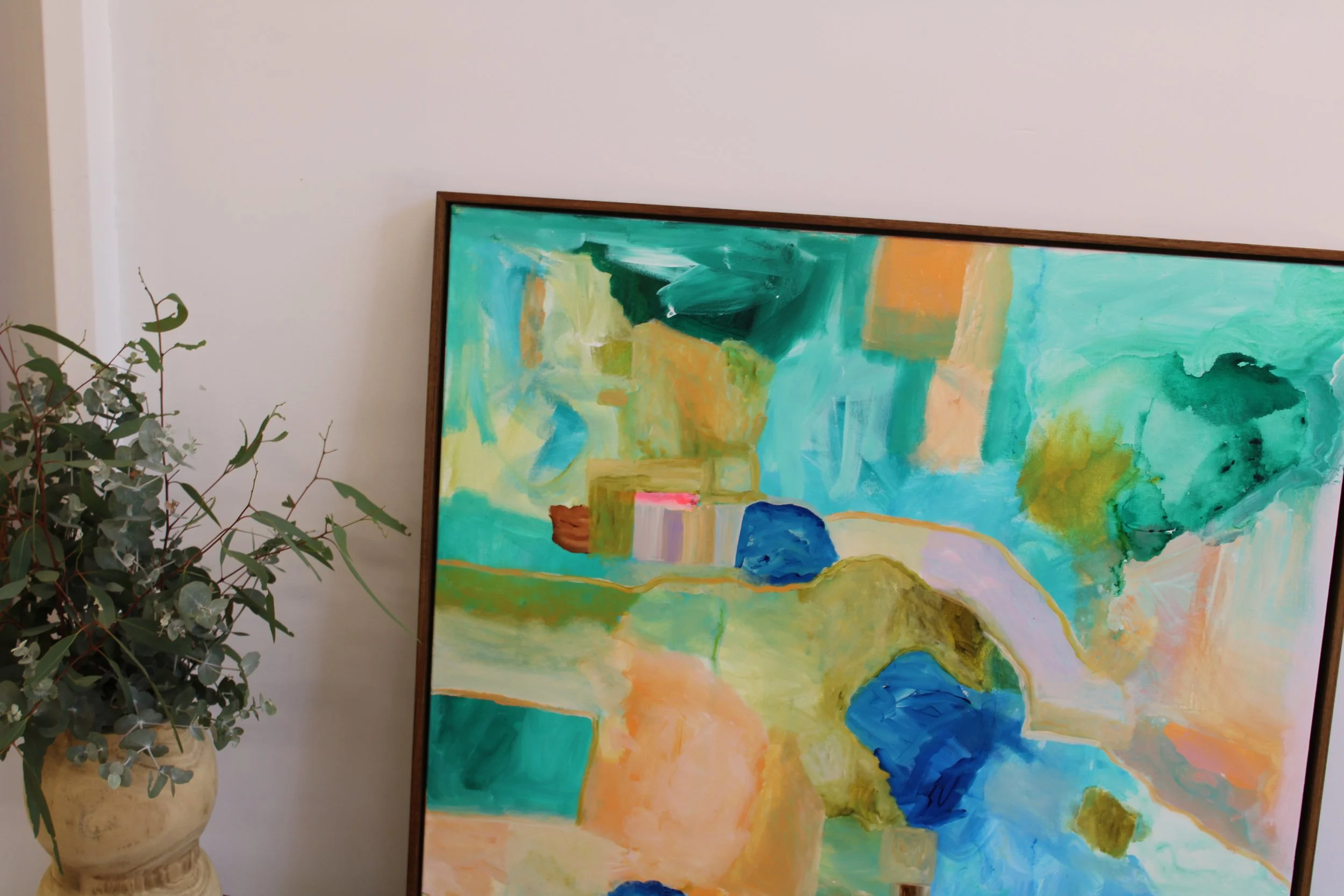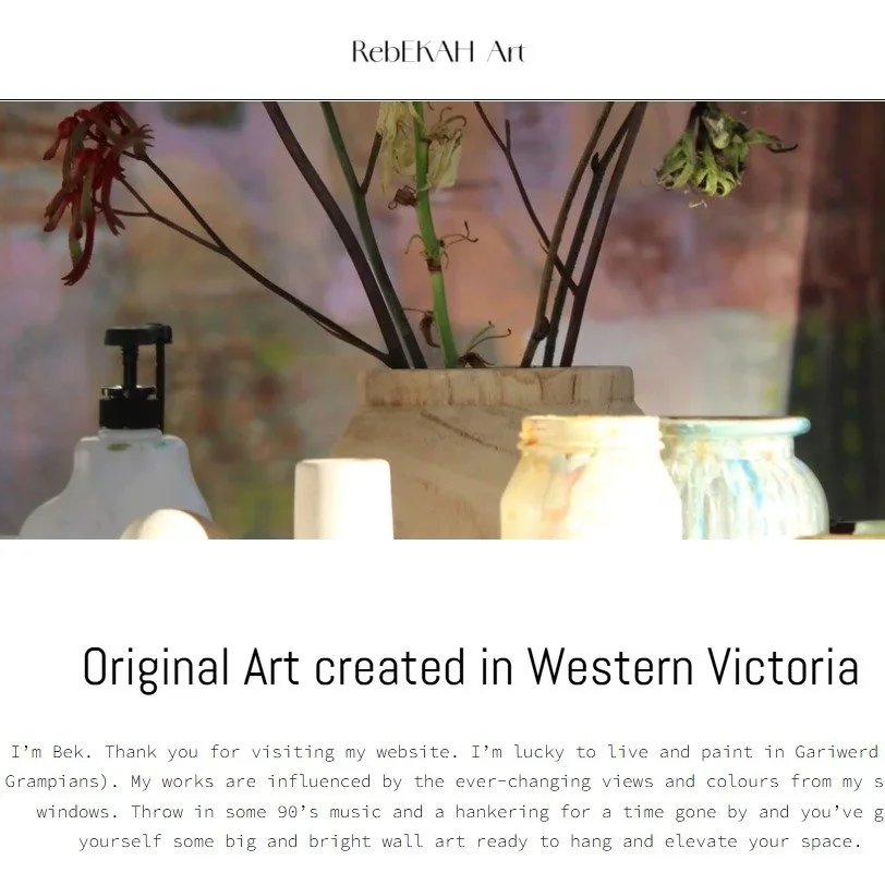 I’m Bek. Thank you for visiting my website. I’m lucky to live and paint in Gariwerd (the Grampians). My works are influenced by the ever-changing views and colours from my studio windows. Throw in some 90’s music and a hankering for a time gone by and you’ve got yourself some big and bright wall art ready to hang and elevate your space.